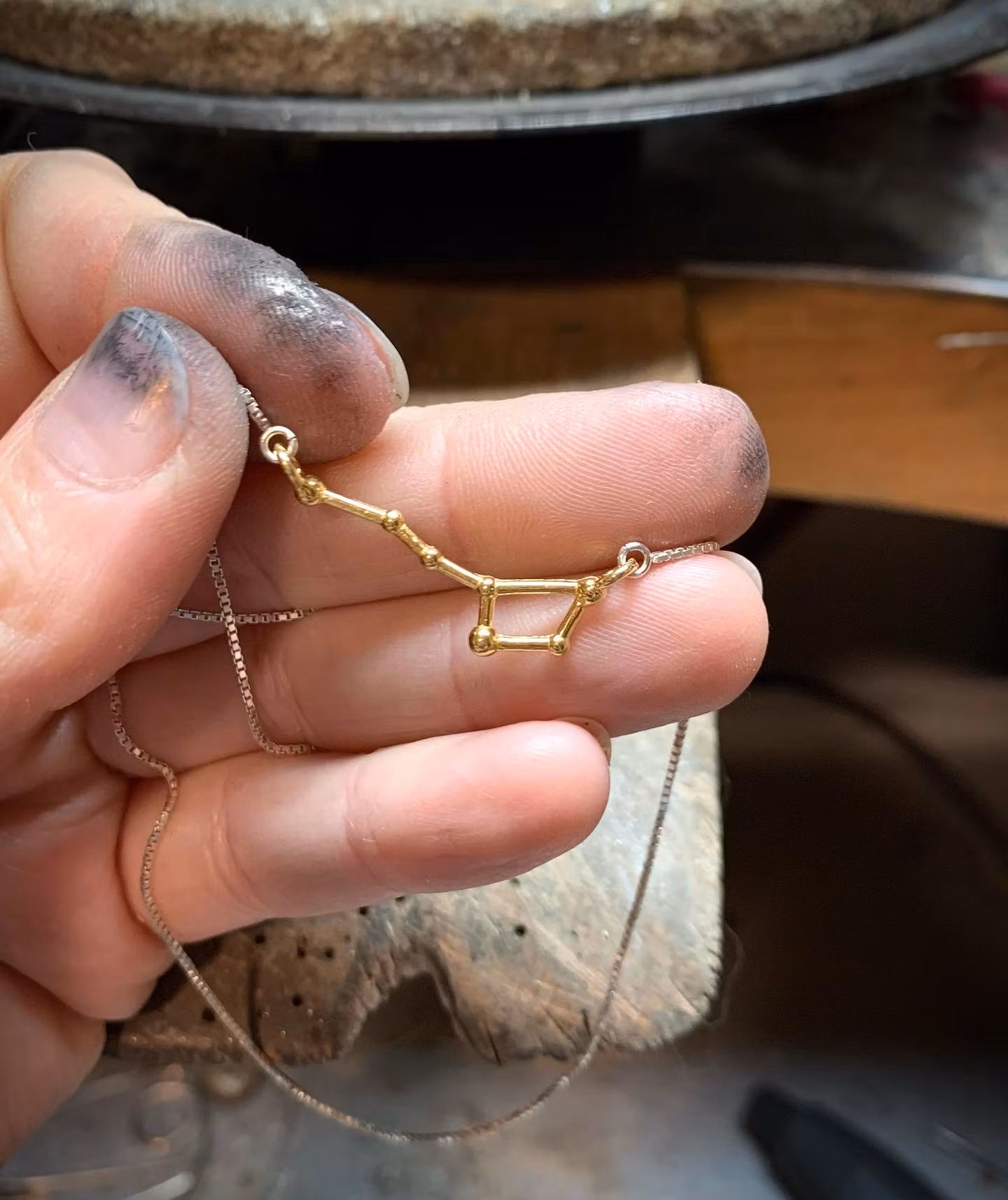 A beautiful silver necklace with the Big dipper / the Plow in silver, coated whit a thin layer gold.