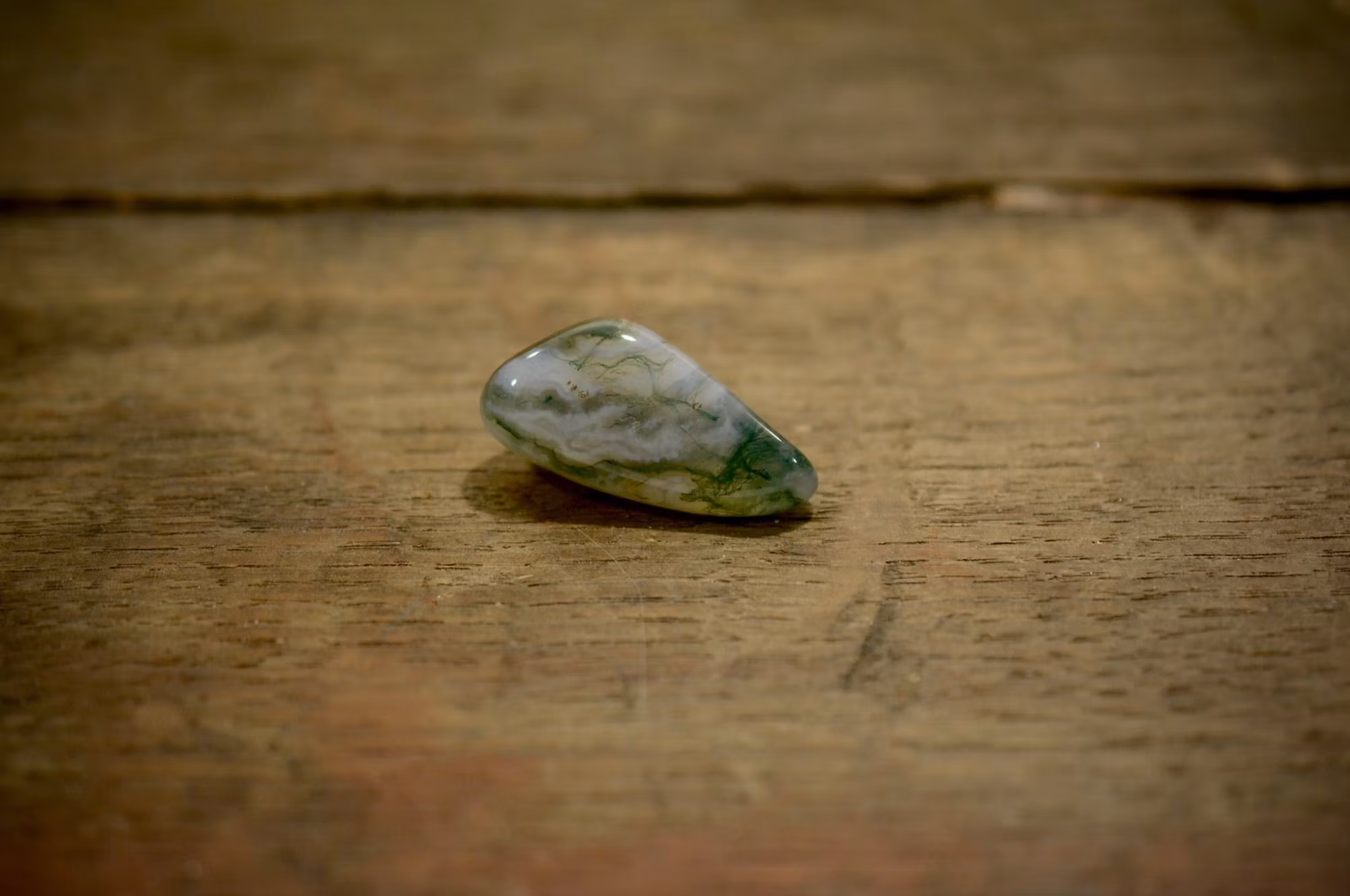 Mossagaten sägs vara en stabiliserande sten som hjälper dig att se allt det vackra som omger dig med sin starka anknytningar till naturen.